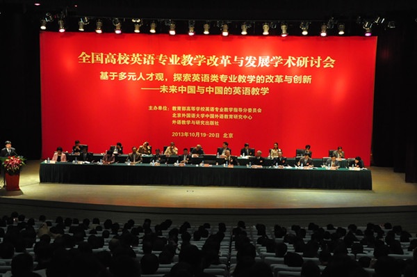 2013年10月18-20日,“全国高校英语专业教学改革与发展学术研讨会”在北京外研社国际会议中心隆重开幕。来自全国29个省、市、自治区640多所高校(全国设有英语专业的院校共994所)的外语教育界专家学者、高校外语院系负责人及一线教师代表共1000余人集聚北京大兴,以“基于多元化人才观,探索英语类专业教学的改革与创新”为主题,共商英语类专业(含英语、翻译与商务英语三个专业)国家质量标准的设立与教学改革发展的方向。我院英语系主任孙志祥教授与副主任朱义华博士全程参加了本次研讨会。