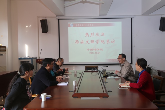 2017年10月31日,西安文理学院足球篮球官方直播平台袁卫敏院长一行四人来院学习考察。