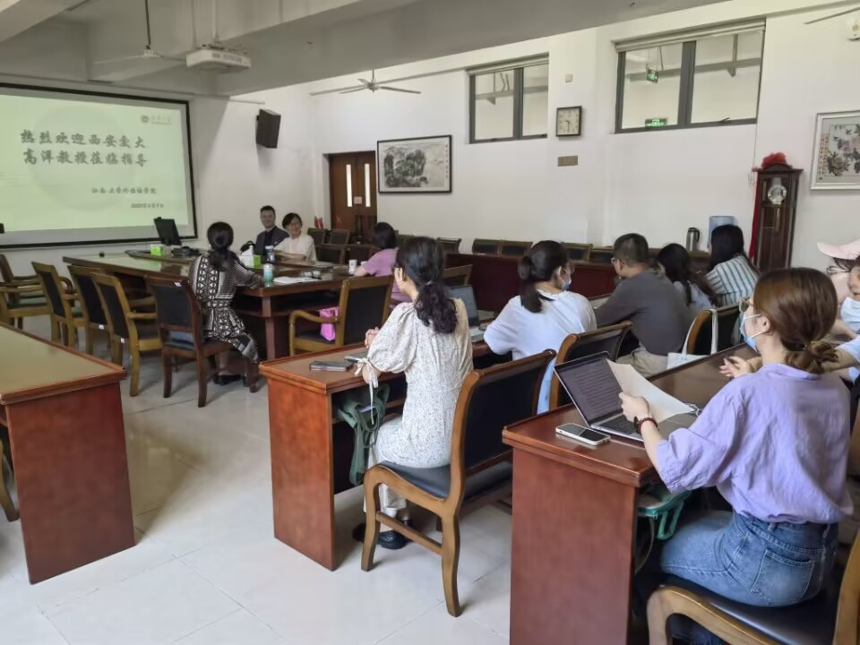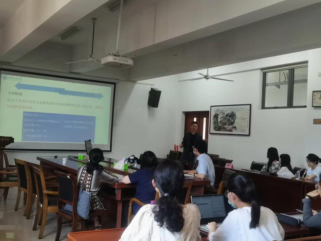 6月9日上午,西安交通大学高洋博士应邀为足球篮球官方直播平台的师生讲座,题为“社会文化论视域下高校青年英语教师多元身份发展研究”。足球篮球官方直播平台副院长顾琦一教授主持,张鹏教授点评,足球篮球官方直播平台各系部的老师和不同年级研究生聆听讲座,并做互动交流。
