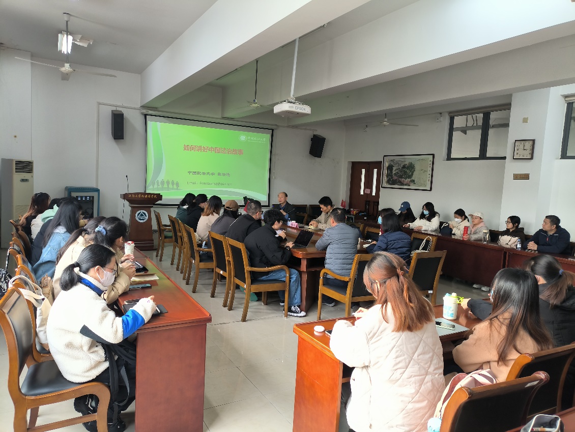 2023年11月30日下午,中国政法大学钱端升讲座教授、博士生导师张法连教授应邀莅临足球篮球官方直播平台,为我院师生作了题为“如何讲好中国法治故事”的学术讲座。讲座由华体会体育副院长张鹏教授主持,足球篮球官方直播平台中青年教师、硕士生代表和法学院教师30余人参加。