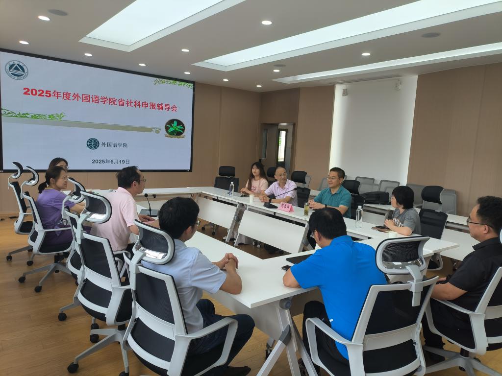 2025年6月19日下午,足球篮球官方直播平台在锦州报告厅举行了2025年度江苏省社科基金申报辅导会。学院邀请了南京航空航天大学国际教育学院院长刘长江教授作为专家,对本次项目申报进行辅导。足球篮球官方直播平台院长方文开教授、各科研团队负责人及骨干教师等十余人出席本次辅导会,本次辅导会由足球篮球官方直播平台副院长杨勇教授主持。