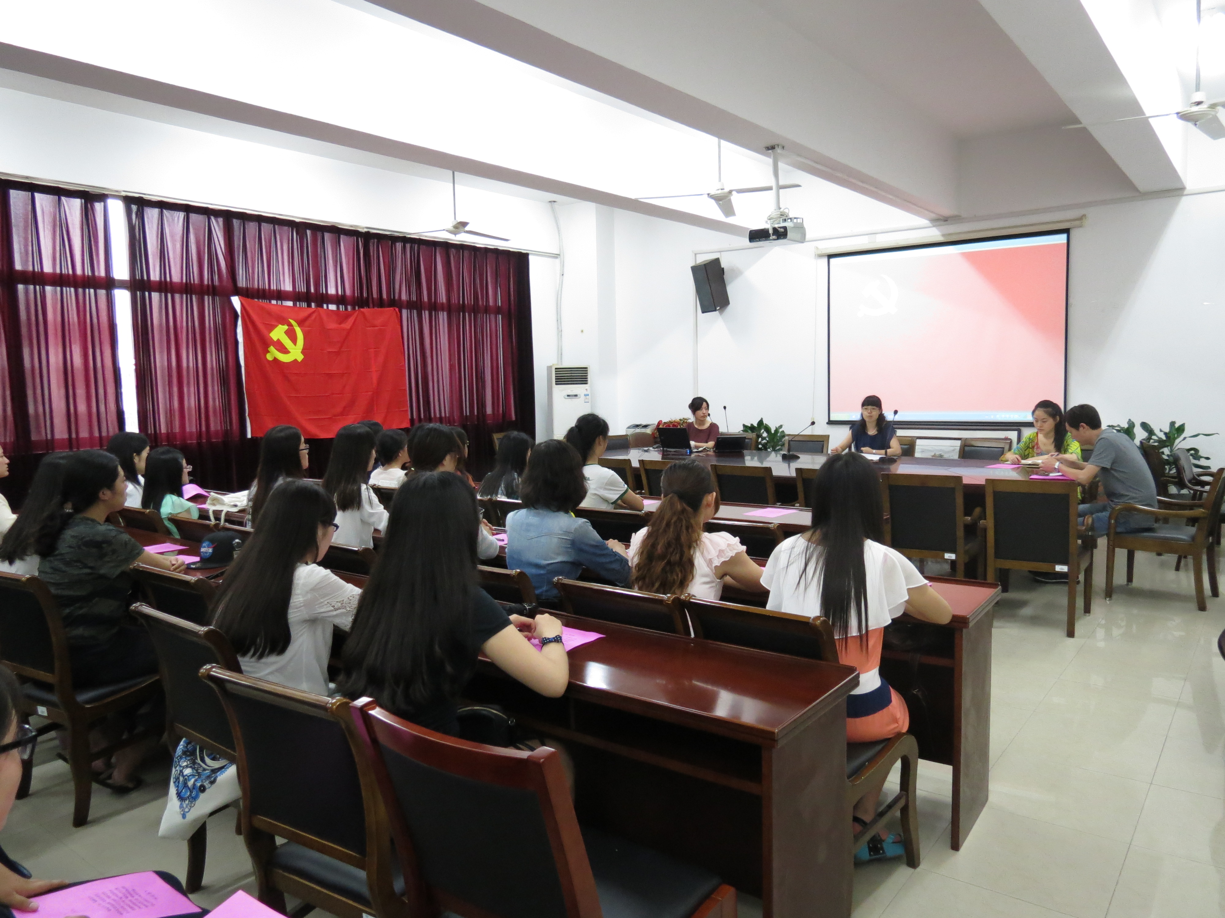 月30日下午,2015年足球篮球官方直播平台新党员“七一”宣誓大会在文科楼A349会议室举行。学院党委副书记赵莹、党委秘书许广玉、12级党支部书记王琰玲、13级党支部书记林天飞以及全体新党员参加仪式,仪式由王琰玲老师主持。