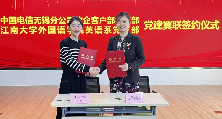 华体会体育英语系党支部与中国电信无锡分公司政企客户部党支部开展党建翼联签约仪式