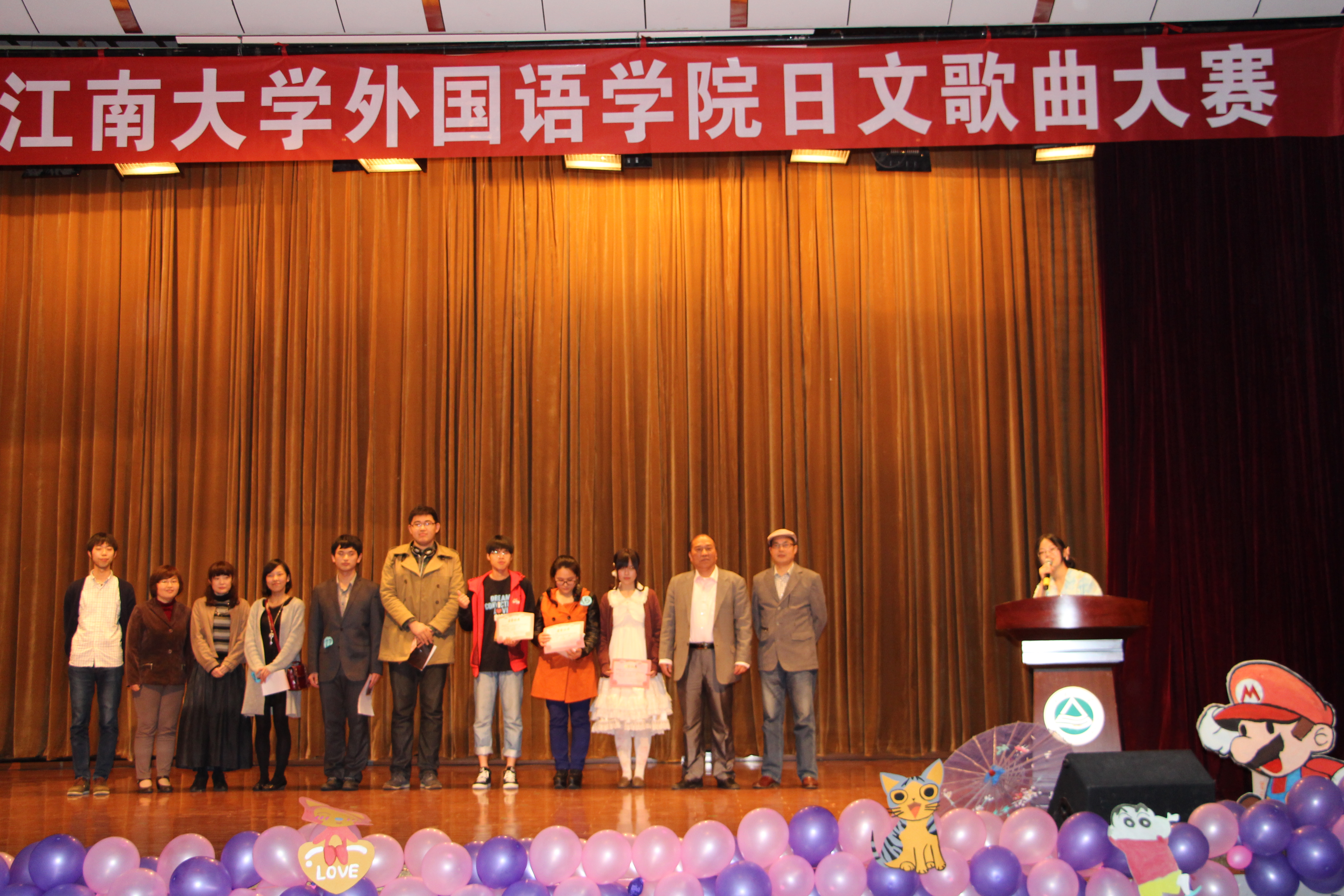 4月19日,由江南大学外国学院主办的日文歌曲大赛在南区大学生活动中心拉开帷幕。本次日文歌曲大赛是足球篮球官方直播平台极具特色的大型活动之一,旨在为全校日语爱好者提供交流与展示的平台,历年来广受全校日语爱好者的喜爱。此次比赛除外语学院的学生积极参加之外,还吸引了食品学院、设计学院、物联网工程学院、商学院以及北美学院等学院的四十余名同学参加。日语系副主任崔明姬、副教授周韬、日籍教师田村恭平、中西由美子以及赞助商出席了比赛,并担任了评委。