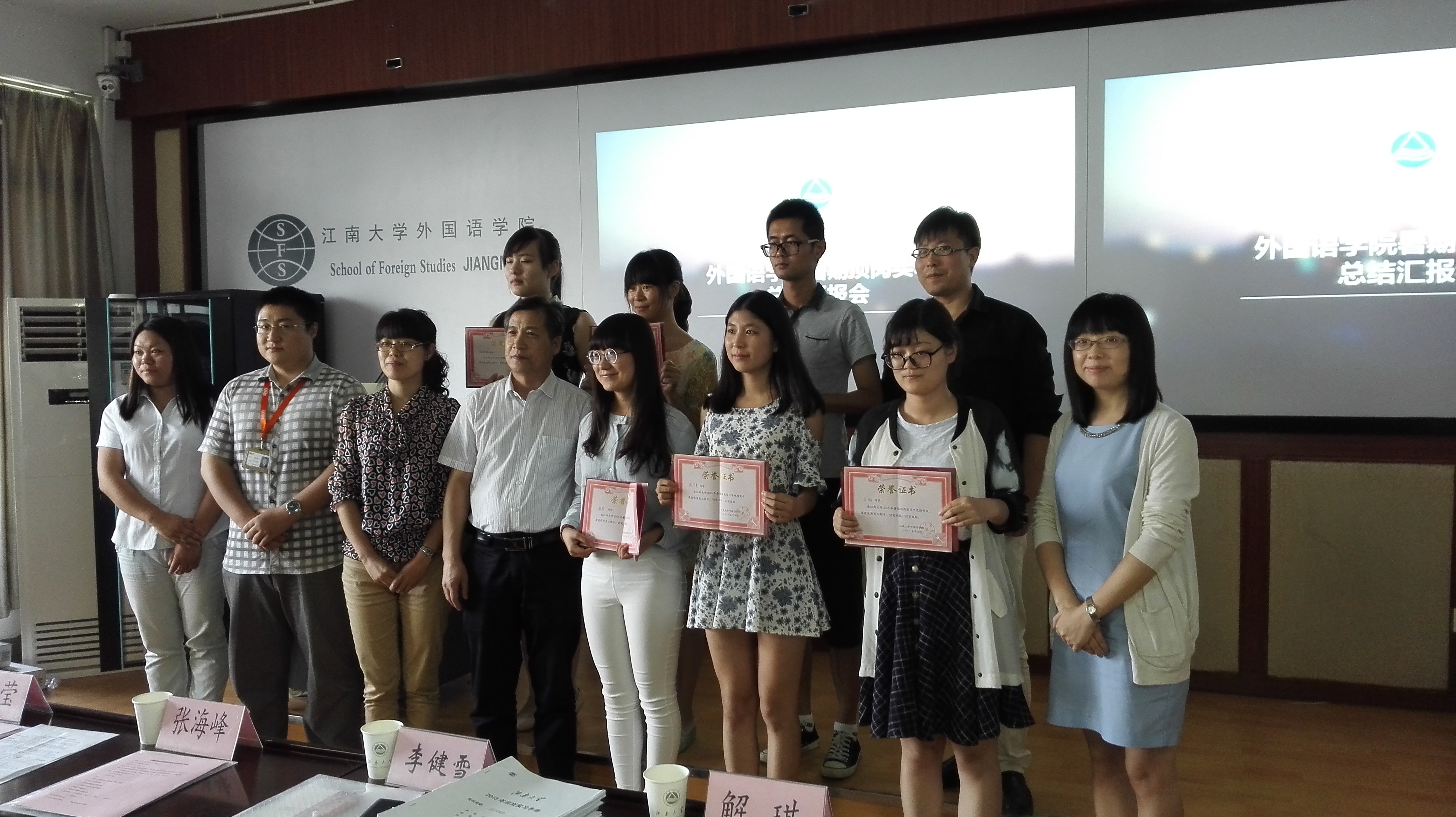 2015年9月16日下午,足球篮球官方直播平台在二教2C618教室举行了2015年暑期顶岗实习汇报大会。江南大学学生工作(部)处副处长张海峰,足球篮球官方直播平台副院长李建雪、院党委副书记赵莹,苏州新东方学校副校长解琪,无锡留园文化咨询有限公司负责人莫根磊,无锡博维教育培训中心人事经理黄瑞平及足球篮球官方直播平台大一、大二学生出席了本次会议。