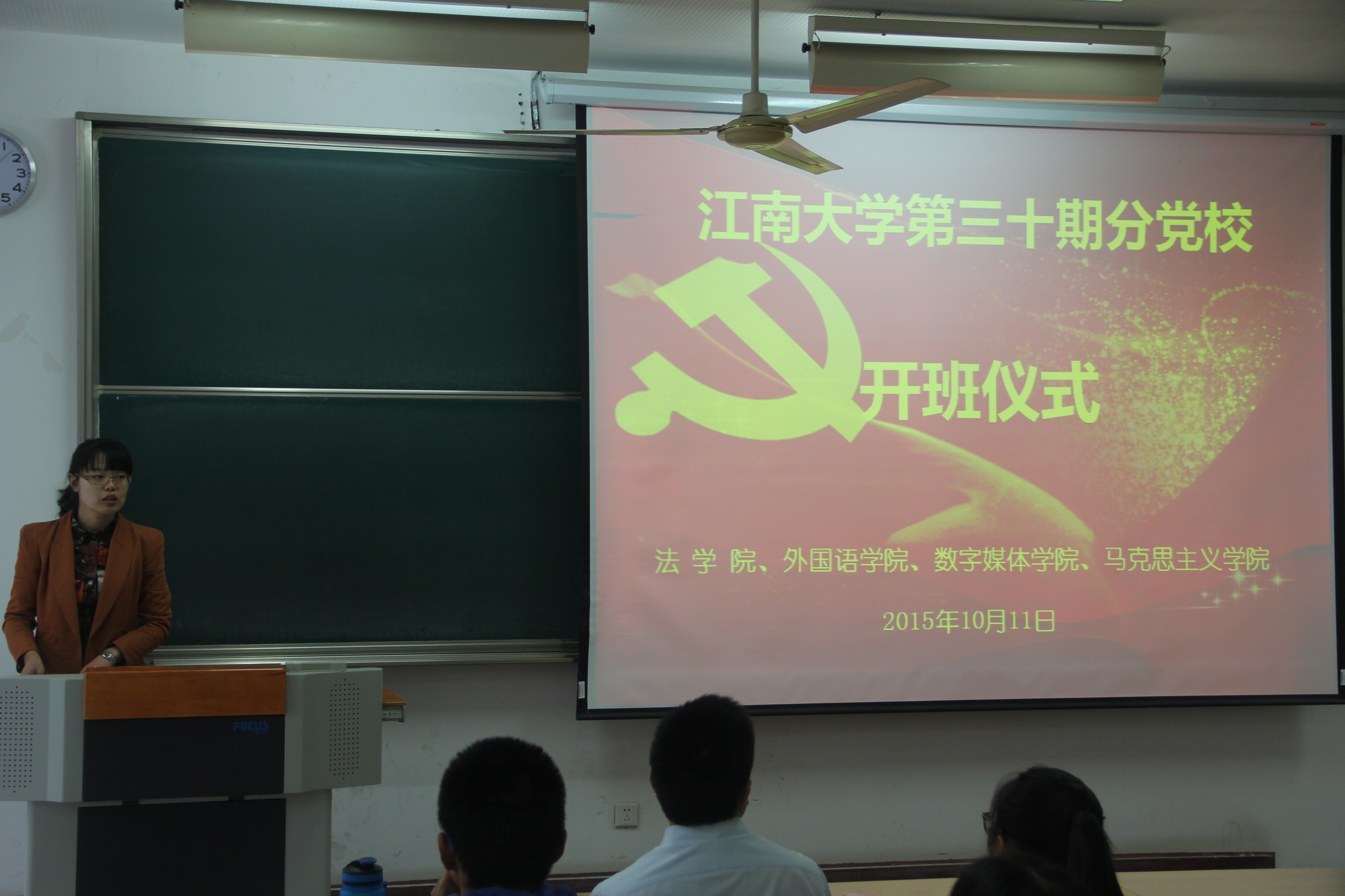 2015年10月11日上午,江南大学足球篮球官方直播平台、法学院、数媒学院、马克思主义学院第三十期分党校开班仪式在2c203举办了隆重举行。足球篮球官方直播平台党委副书记赵莹、数媒学院党委副书记王维青以及相关辅导员出席了此次开班仪式。四学院共92名学员参加了此次分党校的培训。
