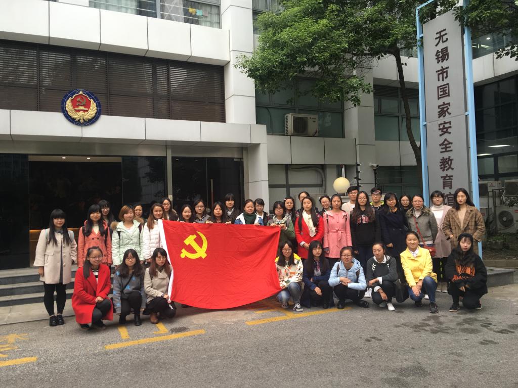 十一月九日足球篮球官方直播平台32期全体党员发展对象在足球篮球官方直播平台副书记赵莹老师、教工党支部吴颖老师、邢嘉锋老师以及分团委书记陈昀老师、辅导员王琰玲和刘琦老师的带领下参观了无锡市国家安全教育馆。