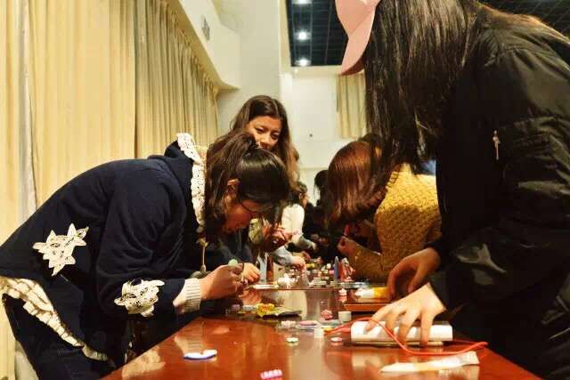 本次晚会携手机械学院,内容丰富,形式新颖, “化妆指导”“手工手机壳制作”“鲜花玫瑰赠送”“等活动同时进行。同学们踊跃参与,现场气氛活跃,热闹非凡。美妆指导,让女生们变得更加靓丽自信;DIY的手机壳,受到了大家的追捧,展现了女生们的心灵手巧。
