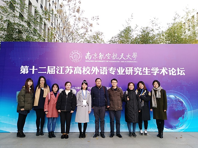 2017年12月8至10日,由江苏省高等学校外语教学研究会和江苏省高校外语专业研究生学术论坛组委会主办,南京航空航天大学足球篮球官方直播平台承办的第十二届江苏高校外语专业研究生学术论坛在南京航空航天大学举行。省内高校160余名博士、硕士研究生及其领队教师汇聚一堂,我院16级研究生马小越、邱思佳、孙培培、王坤淼、谢婷婷、余婷婷、张芮和17级研究生潘婧在朱义华副院长的带领下参加了此次论坛。