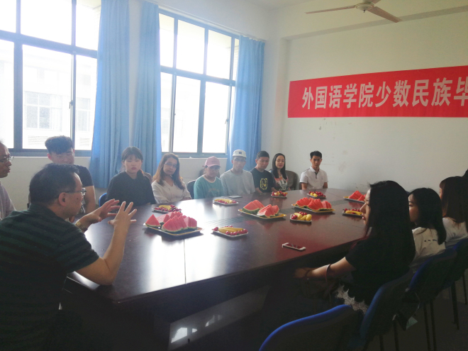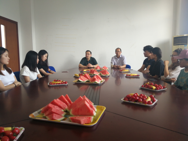 学院为大家准备了水果茶点,毕业生们从学业、生活、就业等方面交流了自己在江南大学的经历感受和问题困难等,现场氛围和乐融融。两位领导认真了解了同学们的学习生活情况和毕业就业情况,尤其是在就业信息获取、求职能力提升以及学业方面的困惑,并表示将尽力为少数民族学生在江南更好地学习、生活和就业提供指导和帮助。