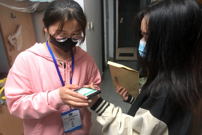 在疫情防控期间,学院学生志愿者积极响应“门铃行动”,进入学生宿舍对在校学生的“两码”及“核酸检测”等信息进行核验、统计,做到信息不漏一人,数据及时更新,并为在校同学发放口罩、温度计,助力校园疫情防控。在信息核查后,志愿者将核查情况进行梳理,完成一份宿舍排查报告,将“行程码带星号”、“宿舍限动”、“长广溪隔离”等信息分类汇总,以实际行动织密防控网,守护在校同学的健康。外院学子们也深刻地了解防疫的重要性,每日坚持测量体温,上报数据,做好自身健康监测,积极配合学校疫情防控工作。
