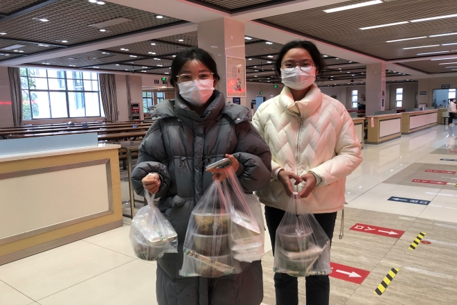 对于宿舍限动的同学,学院及时安排志愿者进行“点对点”服务。每个限动的宿舍安排一名志愿者对接,除了日常送餐外,及时了解限动宿舍的人员晨午检情况。为了给宿舍限动同学送餐,志愿者们每天跑多次食堂,细心地了解同学们的口味爱好,挑选美味的饭菜,给限动同学们稍显单调的生活带来了丝丝暖意。一句“放心,随叫随到哈”,让宿舍限动的同学感受到暖心的关怀。病毒让人和人之间的距离变远,但却拉近了心与心之间距离。在疫情这一特殊时期,同学们互帮互助,一起共渡难关。
