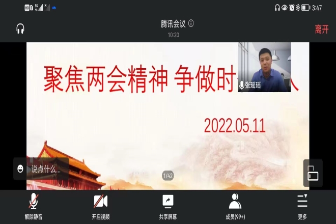 5月11日下午,足球篮球官方直播平台青马工程训练营与入党积极分子培训班举办线上理论学习讲座,张瑶瑶老师为大家带来题为“践行两会精神,争做时代新人”的讲座,学生会组织部部长熊雪冰主持会议。