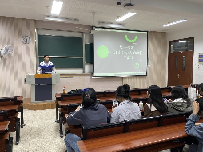在去年的秋招中,张龙飞入职中建科工集团。分享中,张龙飞围绕“认清自己”、“信息获取”、“面试准备”三个方面进行。他结合自己的实际求职经历给现场的学弟学妹提供了一些建议,分享了一些求职实用工具。分享中,张龙飞说:除了上述的收集信息、踏实努力之外,我认为求职规划还需要一种有更为宏观的思考,一种大历史的眼光,即把个体命运放到整个时代洪流、国家进程中去考虑。最后,他以北大钱理群教授之问作为结束语:世界往何处去,中国往何处去,“我”会往何处去?