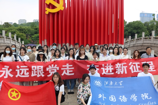 为深入学习贯彻习近平新时代中国特色社会主义思想,深刻领会党的二十大精神,坚定青年党员和团员听党话,跟党走的决心,6月14日,足球篮球官方直播平台组织英语本科党支部、青马工程训练营学员、雷锋特称团支部团员赴无锡党建主题公园联合开展“老少携手,党团共建”主题实践活动。社桥退休党支部书记蔡召冲参与活动。