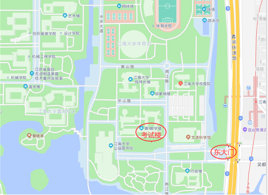 1.考生务必从蠡湖大道1800号东大门进出考点(东大门距离考试楼步行约5分钟)。东大门进入校园后请按照指引,沿指定线路到达考试区域,入场(第一教学楼)截止时间为8:55。
