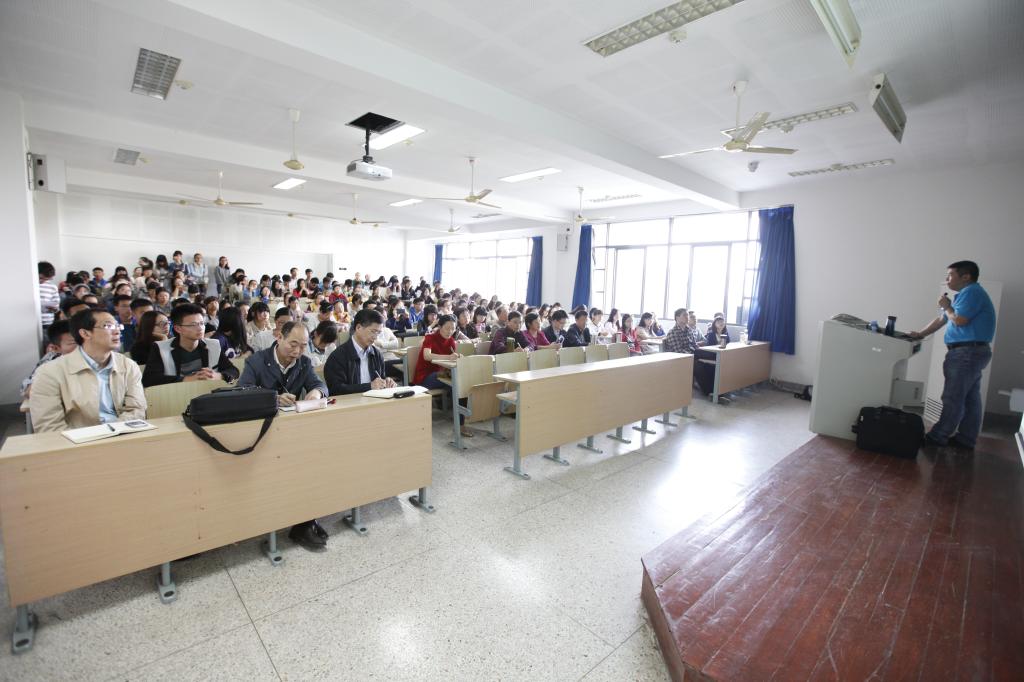 10月15日下午,上海市科技翻译学会副会长、全国外语类核心期刊《上海翻译》常务副主编、上海大学足球篮球官方直播平台傅敬民教授应邀来我院做题为“翻译学术论文写作与发表”的专题讲座,讲座由足球篮球官方直播平台副院长李健雪教授主持。足球篮球官方直播平台翻译学科方向所有教师、其他学科方向中青年教师、全体研究生和高年级本科生近200人参加了此次讲座。