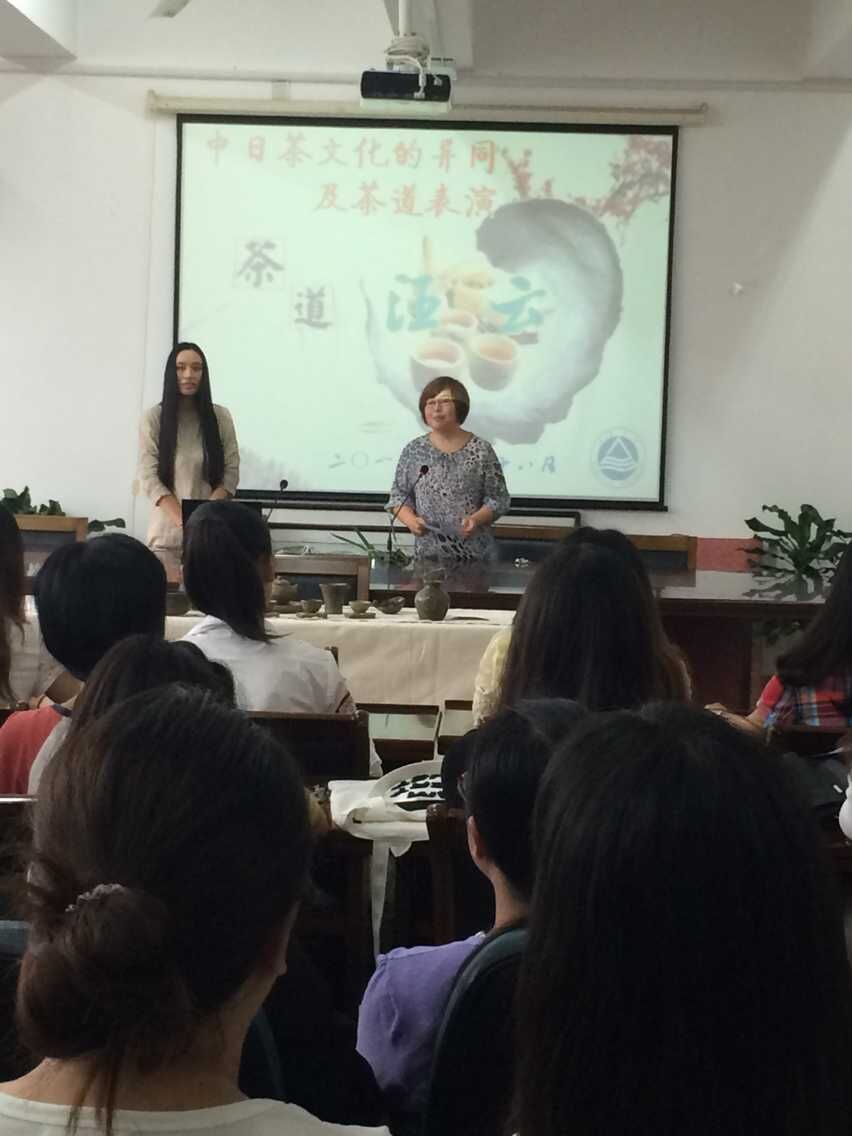 汪老师用ppt详细讲解了中日韩茶道的异同,使在场的同学深刻领会到茶道所传递出的禅境,并加深对生活、自然的领悟。汪老师还结合自己长期的茶文化交流经验,告诉同学们日本与韩国的茶道重视形式,但是内容很空洞,中国的茶艺虽没有日韩那么复杂,但是使观众更能产生一种大气的感觉,与其说重其形式,不如说在做茶道时更重视自己内心的感悟,在那行云流水的步骤中,平静自己的内心,感悟自己周边的一切。