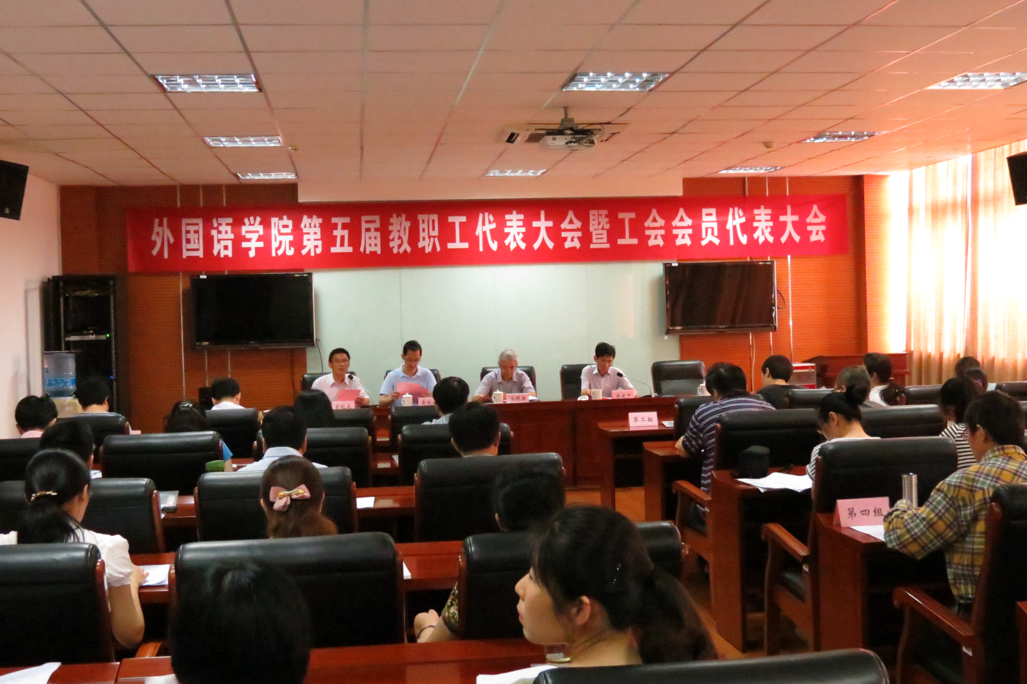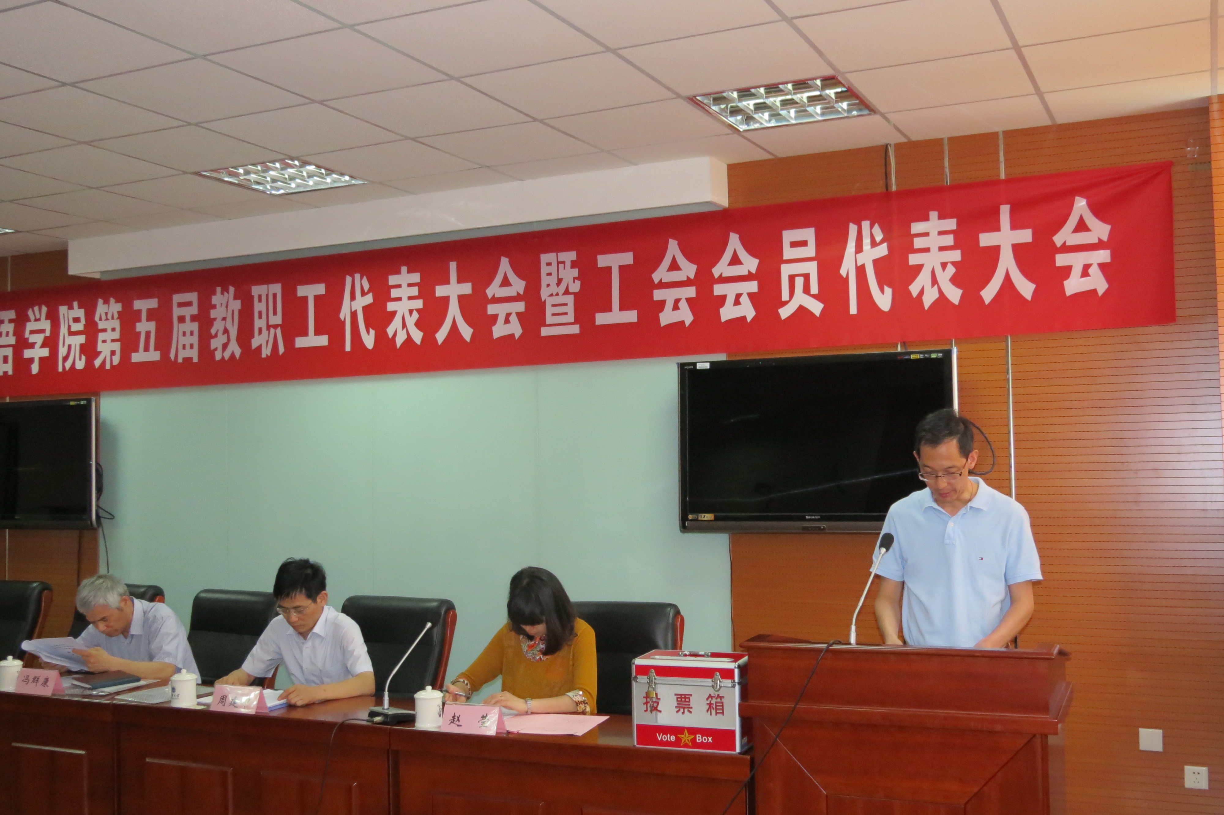 6月30日上午8点,足球篮球官方直播平台第五届教职工代表大会暨工会会员代表大会(以下简称“两代会”)在庄严的《义勇军进行曲》中开幕。大会由学院党委副书记、副院长赵莹主持,校工会主席冯群康应邀到会并讲话,冯主席对我院分工会在过去的三年中在工会建设和民主管理等方面取得的成绩表示充分肯定,并就更好地做好学院工会工作提出了几点希望和要求。