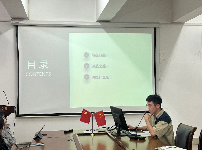 胡自威同学的主题为“求学是一场三顾茅庐”。他分享了选择读博的心路历程,建议大家明确自己读博的初衷,坚定自己攻读博士的信心。接下来,他从申博前期准备、选择院校和导师、申请材料介绍、笔面试准备四个方面展开分享。胡自威同学强调了申请材料中研究计划(research proposal)的重要性,并指出在面试前需要十分熟悉专业课的内容。此外,他还鼓励大家挖掘自己的学术潜力,创造学术成果,建议同学们广泛阅读,形成专业知识体系,关注所选导师研究领域最新进展。