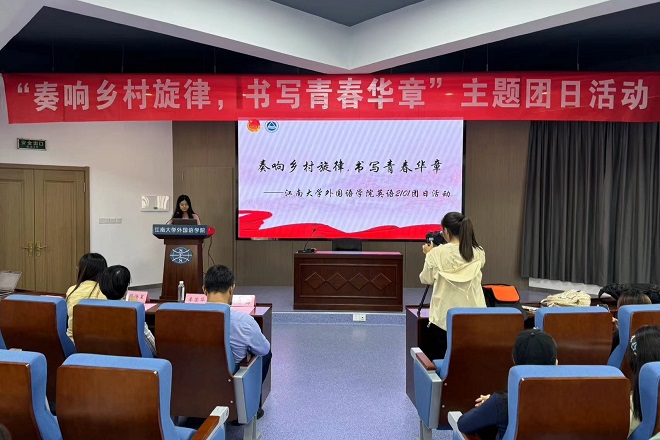 6月6日下午,华体会体育英语2101团支部在君金报告厅顺利举办“奏响乡村旋律,书写青春华章”主题团日活动。江南大学党委副书记、纪委书记刘淼,足球篮球官方直播平台党委书记李荣华,足球篮球官方直播平台分团委书记顾海星出席,英语2101张闻天特称团支部,英语2204雷锋特称团支部和院青马工程训练营全体学员参加。