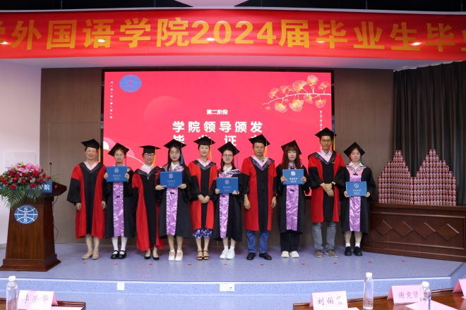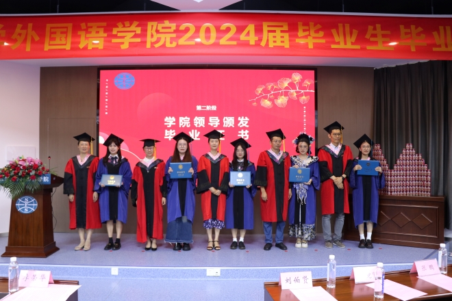 最后,学院党委书记李荣华、党委副书记刘伯贤、副院长顾琦一、副院长谢竞贤、副院长张鹏共同为2024届毕业生进行学位授予仪式“拨穗礼”。