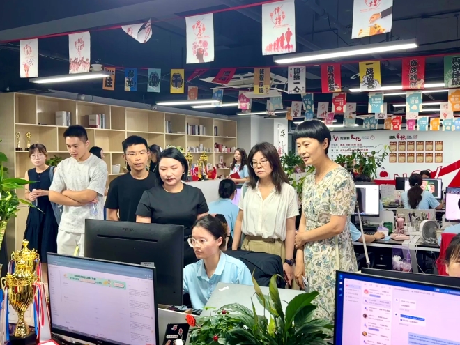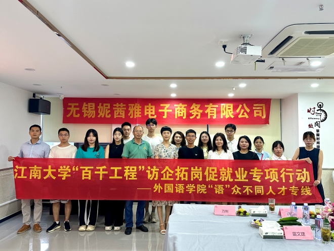 为深入贯彻落实党中央、国务院华体会体育高校毕业生就业工作的决策部署,根据《江南大学2024年大学生就业工作实施方案》要求,7月11日上午,足球篮球官方直播平台党委书记李荣华、党委副书记刘伯贤、辅导员苗文建、朱家烨以及研究生、本科生代表前往无锡妮茜雅电子商务有限公司开展访企拓岗促就业专项活动。