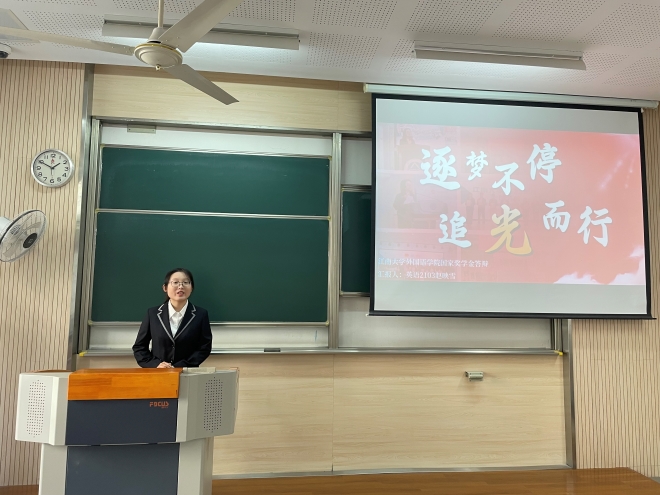 会议伊始,主持人宣读了学校的相关文件和通知,介绍了学院本科生国家奖学金评审要求,明晰了此次国家奖学金答辩的答辩规则。经过前期个人申报、学院审核初评,共有10名学生参与此次答辩,答辩者按照抽签顺序依次上台,并就思想品德、学习成绩、学科竞赛、社会实践等方面进行答辩展示,充分地彰显了外院优秀学子刻苦努力、勤学奋进、勇于担当的精神风貌。整场答辩会气氛热烈、井然有序,在场观摩学习的学生纷纷受到答辩人的优秀事迹所鼓舞,并给予每一位答辩人热烈的掌声。国奖评选答辩会不仅是学生一次展示的机会,更是一次难得的学习机会。