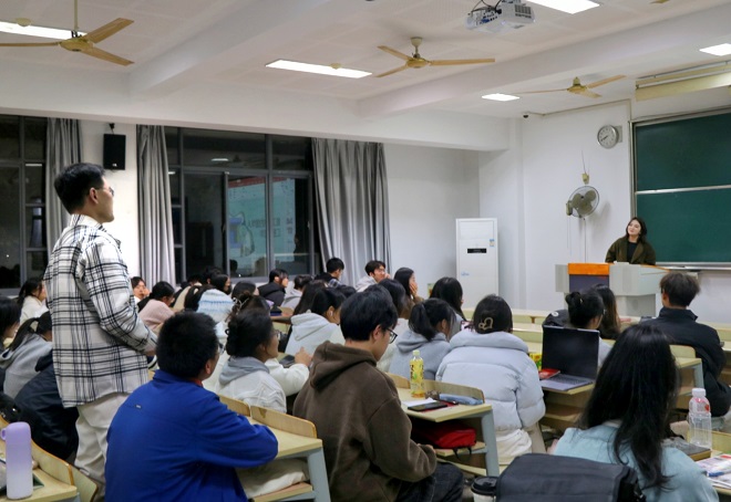 首先,戴丽兰带了职业规划主题讲座。她介绍了企业招聘的基本流程,结合招聘经验分享了HR眼中的优秀简历、面试中的细节等内容。她建议大家在校期间要进行职业探索,学好专业知识,同时培养创新能力、沟通能力、实践能力等,最后她鼓励同学们要勇敢尝试,为未来职业生涯争取更多机会。