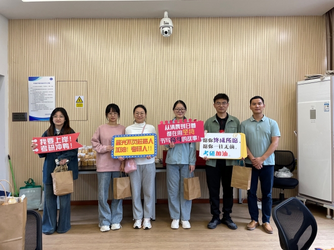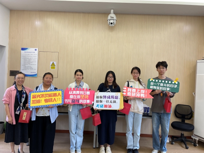 在和考研学生交流中,顾海星表示:大家要根据自己的复习节奏科学合理执行备考计划,要树立信心,保持良好心态和状态,注重劳逸结合,进行高效复习;宋苏凤鼓励大家:在最后的冲刺阶段要咬紧牙关,要排除外界干扰,坚定信念,坚持到底。慰问现场,学生也交流了自己近阶段的备考情况,以及遇到的问题,在场的老师针对学生的问题给予指导和建议。