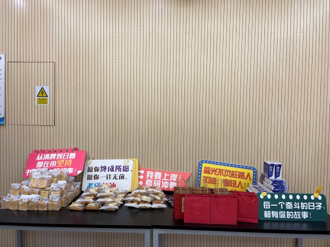 奋进青春,一战成“硕”。学院为考研的同学精心准备了考研加油包:牛奶(成为最“牛”考生)、面包(“包”你上岸)、士力架(“力”量满满)。学生们纷纷表示,收到学院的慰问,心中充满温暖与感动,接下来将以更加饱满的热情投入到考研冲刺阶段。慰问品承载着学院对考研学子们的深深祝福,由衷祝愿学子们考研顺利,梦想成真!