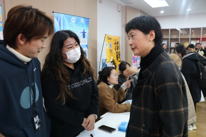 求职学生与招聘企业交流