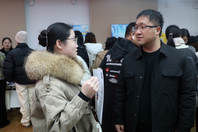 学院党委书记李荣华、学院党委副书记季王飞深入招聘会现场,与用人单位和毕业生进行交流,了解用人单位岗位需求和毕业生就业意向,以促就业为导向加强校企合作,并鼓励求职学生调整心态,抓住机会,积极主动就业。