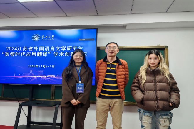 2024年12月6日至7日,江苏省外国语言文学研究生“数智时代应用翻译”学术创新论坛在常州大学科教城校区成功举行。此次论坛由江苏省文学类研究生教育指导委员会主办,常州大学研究生院和足球篮球官方直播平台承办。来自全省各高校的专家学者与翻译学科的研究生们齐聚一堂,共同探讨数字化、智能化时代背景下,应用翻译的新理论、新方法、新技术及应用实践。我院23级2名研究生代表由陈伟教授带队参加了此次论坛。