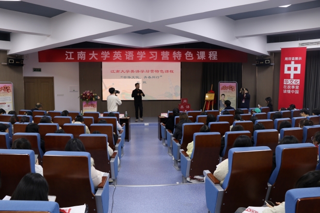 仪式结束后,兰熙进行了江南大学英语学习营特色课程——“中华文化,青春同行”主题讲座。他满怀激情地分享了自己致力于把中国声音传出去的三段独特经历,并着重强调:要用英语讲好中国故事,不仅要关注内容,也要有公共演讲的能力。出色的公共演讲能力能够赋予故事鲜活的生命力,让中国故事跨越语言和文化的障碍,深深触及全球广大受众的心灵深处,使他们真切感受到中国文化的博大精深与独特魅力。