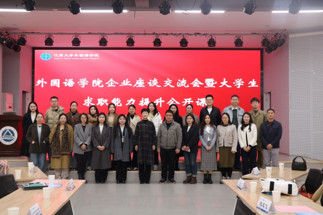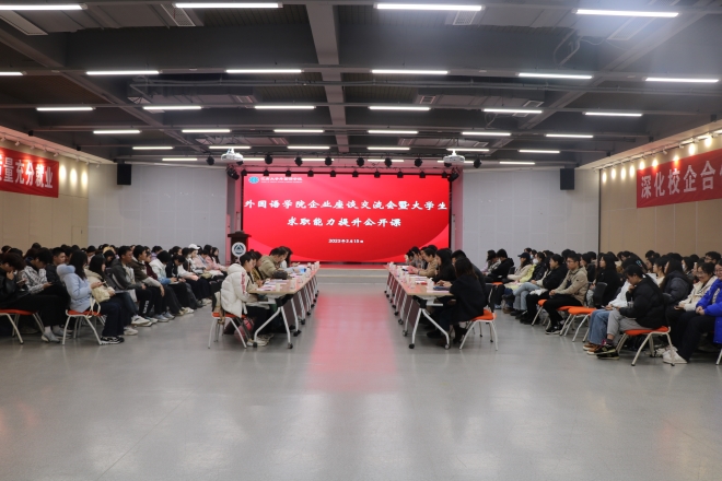 为深化校企合作,加强就业育人,同时激发学生对未来职业道路的积极探索与规划意识,提升就业能力,在临近学校举行春季大型招聘会之前,足球篮球官方直播平台于3月15日上午,在北活F105举行企业座谈交流会暨大学生求职能力提升公开课,活动邀请中报国际、国泰国华、新东方、海亮教育等10家优质企业参会交流。无锡市人才服务中心王晓蕾,足球篮球官方直播平台党委书记李荣华,江南大学学工处副处长孔丽丹,党委副书记、副院长季王飞,英语系曹丹,辅导员苗文建,学院2023届毕业生张龙飞以及学院大三、大四200余名学生参加本次活动。活动由辅导员朱家烨主持。