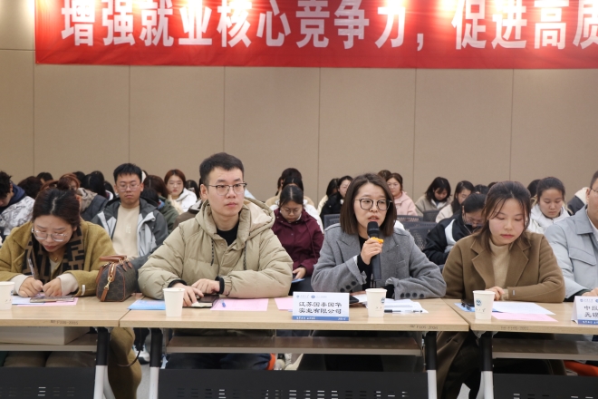 在企业座谈交流环节,各企业代表围绕“提升大学生求职能力”纷纷发言。江苏省中江海外进出口有限公司招聘经理范文倩表示,大学生在校期间要立足专业学习,打造“外语+”的能力,提升个人语言表达能力和解决问题的能力;无锡美迪尔进出口有限公司总经理王涛分享了自身学习经历和创业经历,为准备就业的同学提供了建议;中报国际网络无锡有限公司副总编辑颜玮珏介绍了公司的主营业务,鼓励大家在校期间参与实习实践,希望后期可以和足球篮球官方直播平台加深交流合作。在互动环节,同学们积极提问,表达了自己的困惑并获得了企业代表的解答。许多同学表示,此次活动提供了一个与企业深入交流和互动的机会,不仅让他们了解行业的发展趋势和未来发展方向,更是对自己的职业规划和就业选择提供了指引。
