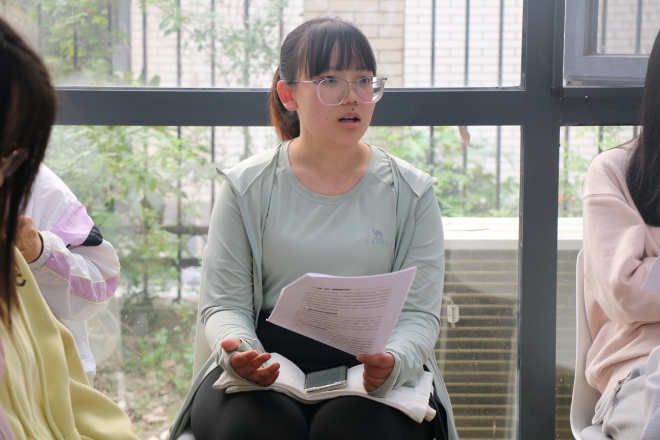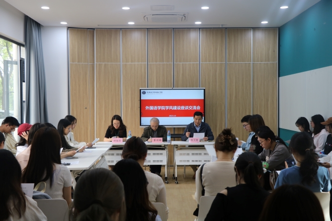 首先,辅导员苗文建介绍了学院学风建设方案,重点介绍了“学生骨干队伍建设”、“班级学风建设”、“榜样典型引领”、“就业与升学带动”等方面内容。在交流环节,英语2204苏妍同学表示:在加强班级学风建设的过程中,要发挥班级骨干的作用,班委同学要围绕班级学风建设凝聚合力,以优良班风助力学院学风建设;23硕邹卫娟从“态度”、“氛围”、“制度”三个方面阐述了自己眼中的好学风是什么样子,她说:作为学生要从“要我学”转变为“我要学”,任课老师也需要有热情,上好每堂课。最后,董剑桥进行总结讲话。他以自身从教多年的经验,提供了学风建设的几点建议,希望值此座谈会,加强师生间的交流,找出问题,拿出办法。最后,董剑桥鼓励在场同学要拿出青年的态度,呈现昂扬的精神面貌。