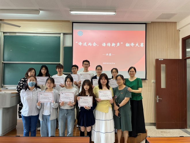 为提高我校学生英语翻译能力,培养具有国际视野的新时代外语人才,足球篮球官方直播平台面向全校学生开展"译述两会,语传新声"主题翻译大赛。5月21日下午,翻译大赛决赛在二教2A107举行,学院钱薇薇、王晓静、曹丹、许兰娟担任决赛评委老师。