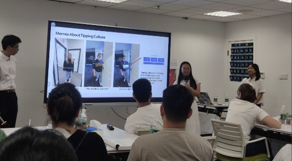在江南大学参加夏校活动的美国加州戴维斯分校学生团队 活动聚焦美式商务沟通实践,通过主题分享、情景模拟、互动游戏等形式展开。结合电子商务案例,生动阐释了美式商务文化理念。在模拟洽谈环节,双方围绕各种真实场景展开对话练习,有效提升了跨文化交际能力。