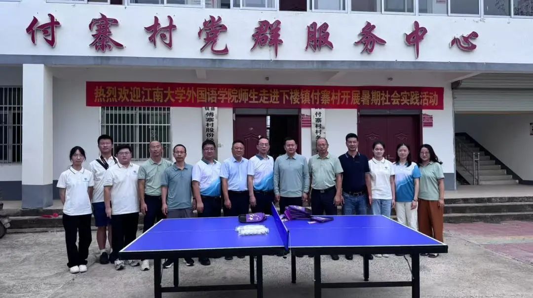 实践活动首站聚焦灵璧县下楼镇付寨村的阳光玫瑰葡萄种植产业。师生们走进葡萄园,就产品包装、出口贸易等议题进行探讨,讨论建议发展葡萄干、葡萄酒等多元产品,融入“农业+文旅”模式,延伸产业链条。在座谈会中,下楼镇党委书记刘金虎、村书记陈光海介绍付寨村具体情况,包括种植作物情况和面临难题等,方文开结合学科优势,提出以校地合作为纽带,通过专家技术连接、专项人才培养为当地产业发展精准牵线指导,尤其发挥外语学科专业特色,培育既懂产业实践又通跨文化沟通的外语人才,进而为乡村振兴注入多元动能。在与村民交流环节中,顾海星结合学院以往社会实践助农经验,建议村民们开拓线上推广农产品渠道,并关注乡村外语教育,合作推动当地农业和教育发展。座谈会后的助学捐赠仪式中,华体会体育向付寨村当地学校捐赠了乒乓球桌和球拍等体育用具,用实际行动践行高校对乡村教育的支持与担当。