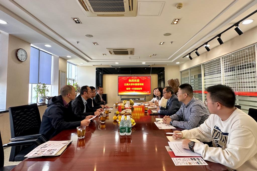 双方举行了座谈交流。毛文明对足球篮球官方直播平台一行的到访表示热烈欢迎。李莉介绍了公司的基本情况、核心业务板块及海外市场布局。她指出,随着公司跨境业务的不断拓展,对具备良好外语能力、跨文化沟通素养及国际贸易知识的复合型人才需求日益迫切,期待与足球篮球官方直播平台建立长期稳定的人才合作关系。方文开就学院的发展历程、学科建设、专业特色及人才培养成效作了介绍。他表示,学院注重学生语言能力与实践能力的融合发展,希望以此次走访为契机,推动双方在学生实习实践、就业招聘、跨文化培训等方面开展深度合作。