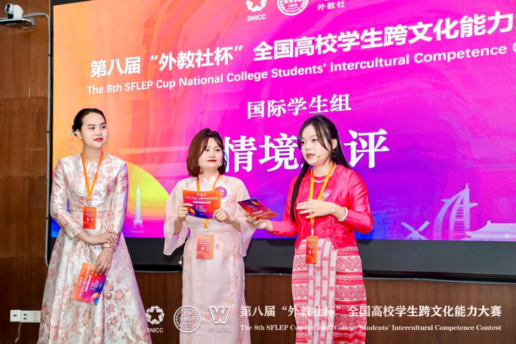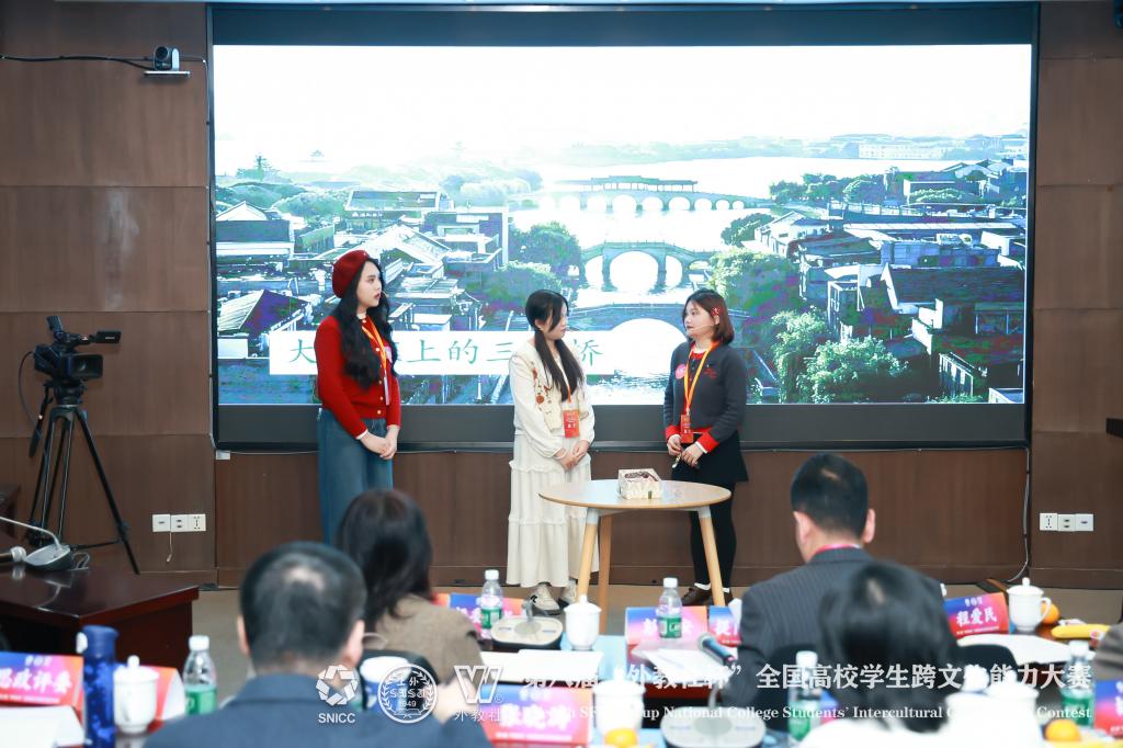 在全国决赛和总决赛的舞台上,各参赛团队围绕多元文化生活、公共外交、商务沟通三个主题展开高水平较量。此前在江苏省赛区摘得国际学生组特等奖的江南大学团队——数字科技与创意设计学院赵怡熙(SOE SOE ZIN)、商学院杨玄庄(DUONG THI HUYEN TRANG)和商学院王美美(SANSEN MANACHAI),在指导老师王伟炜的带领下再度出征,经过案例开发与展析、名言名句解读、知识问答、情境述评和讲述中国故事等多项比赛环节的考察,顺利晋级全国总决赛(全国仅10个国际学生团队获此资格),并最终斩获全国一等奖,实现江南大学在跨文化能力大赛中的历史性突破。