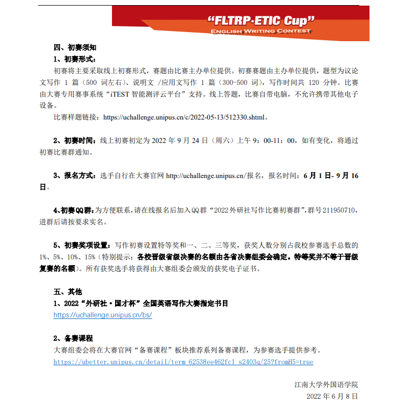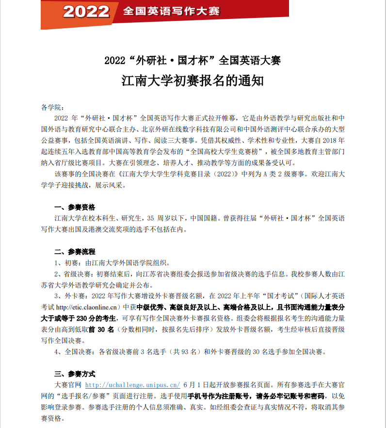 2022年外研社国才杯英语写作比赛的通知
